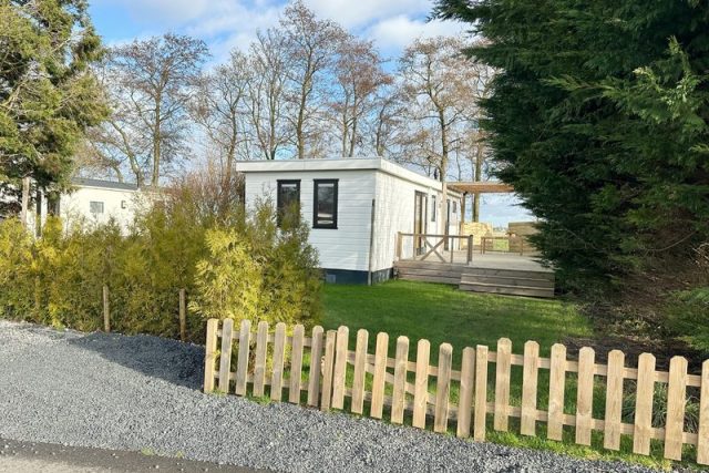 Een prachtig chalet met drie slaapkamers aan de rand van ons park met prachtig uitzicht op de weilanden en Valkkoog.